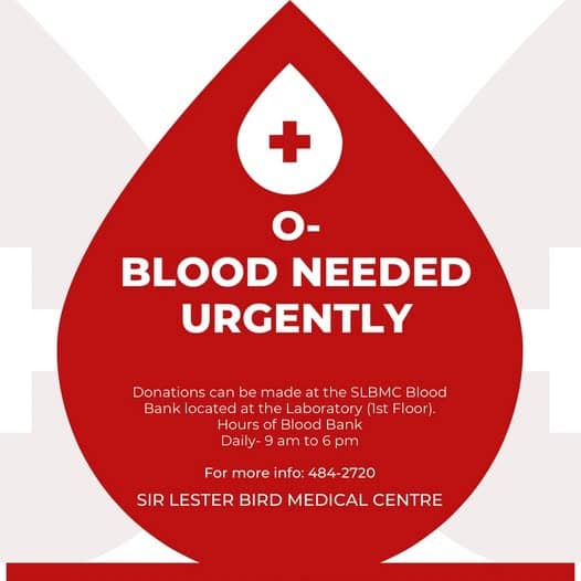 Health officials have issued an urgent appeal for donations of O-negative blood, citing critically low supplies at the Sir Lester Bird Medical Centre.
