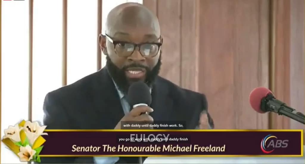 As the final moments of the ceremony drew near, his son stood before the mourners and offered the closing words that once echoed nightly across the airwaves of Antigua and Barbuda: