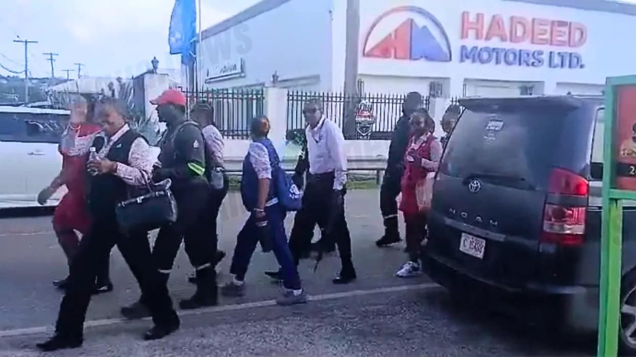 The group, accompanied by officials from the Antigua and Barbuda Trades and Labour Union, was observed travelling along Old Parham Road at about 8:30 a.m.