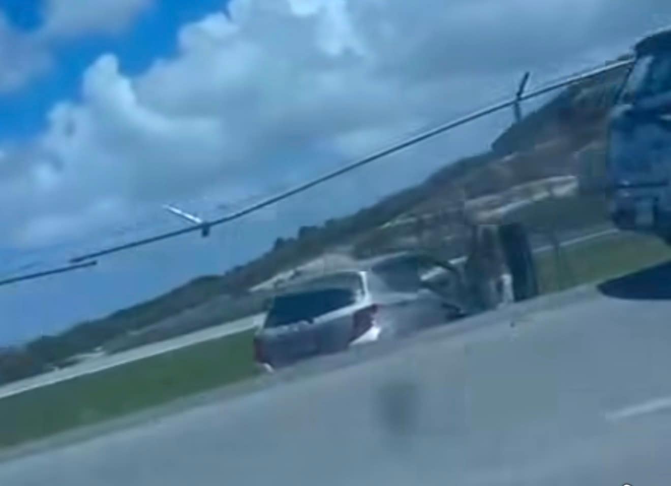 A female driver briefly lost consciousness while travelling along Airport Road, causing her vehicle to veer off course and crash into the airport’s perimeter fence.