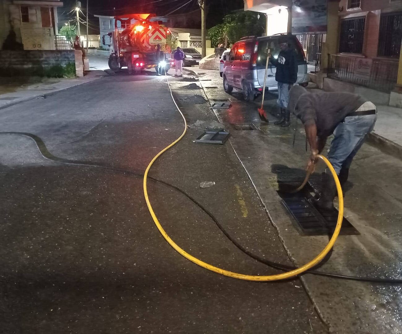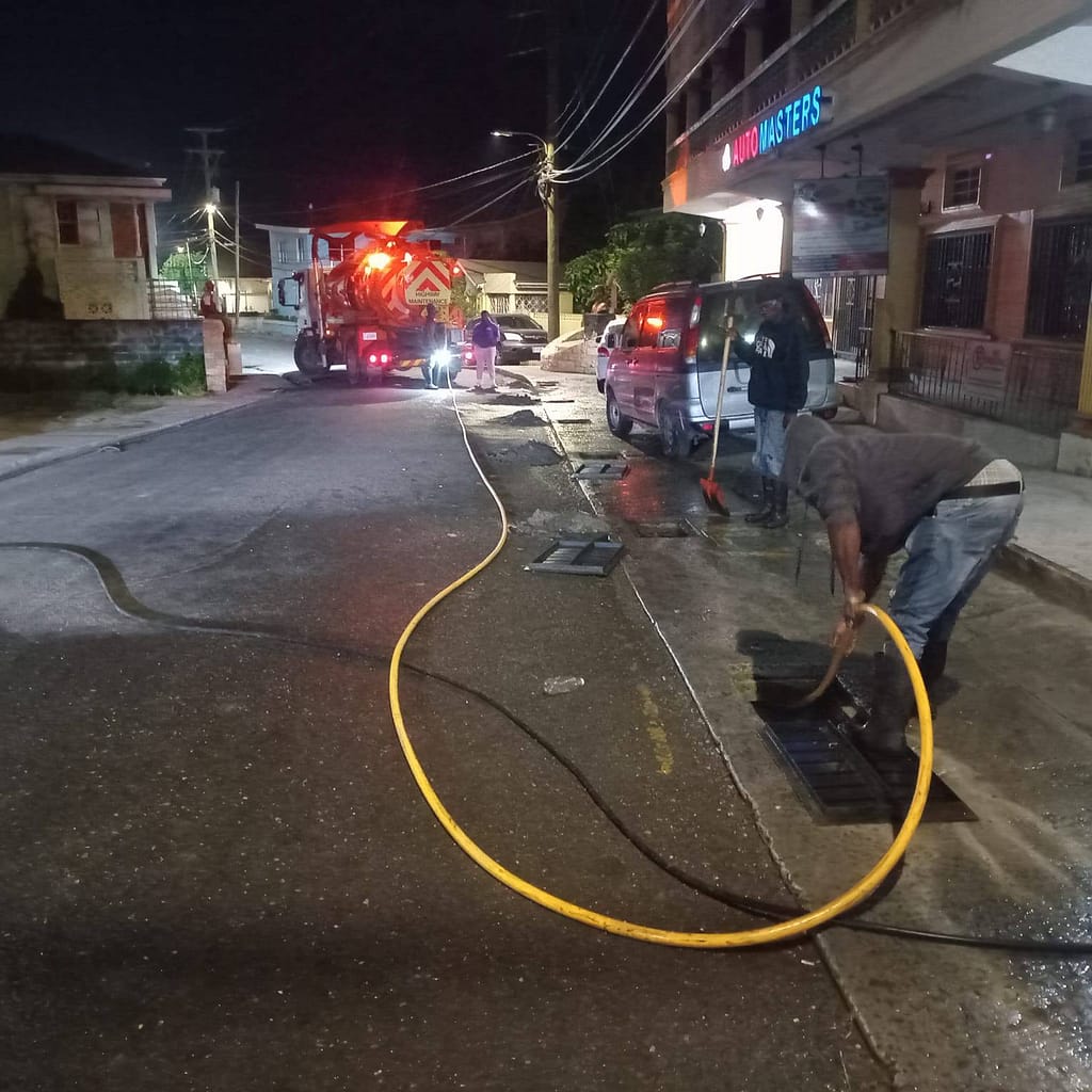 NSWA mid-night teams worked through the night cutting, cleaning, and flushing drains along Independence Drive, Andy Roberts Street, Sir Vivian Richards Street, and the V.C. Bird Monument area up to the Special Security Building, as part of ongoing efforts to improve drainage and reduce flooding.
