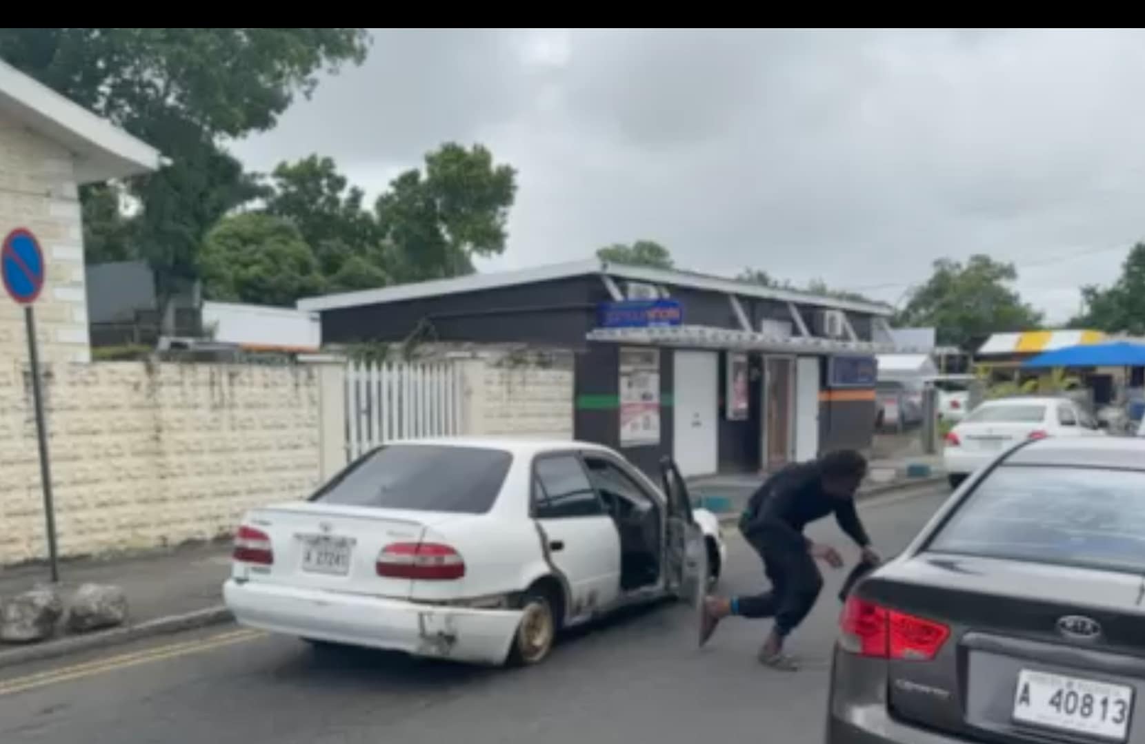 Police are now searching for the male driver of a white Toyota Corolla who abandoned his vehicle in the middle of Cross Street earlier today.