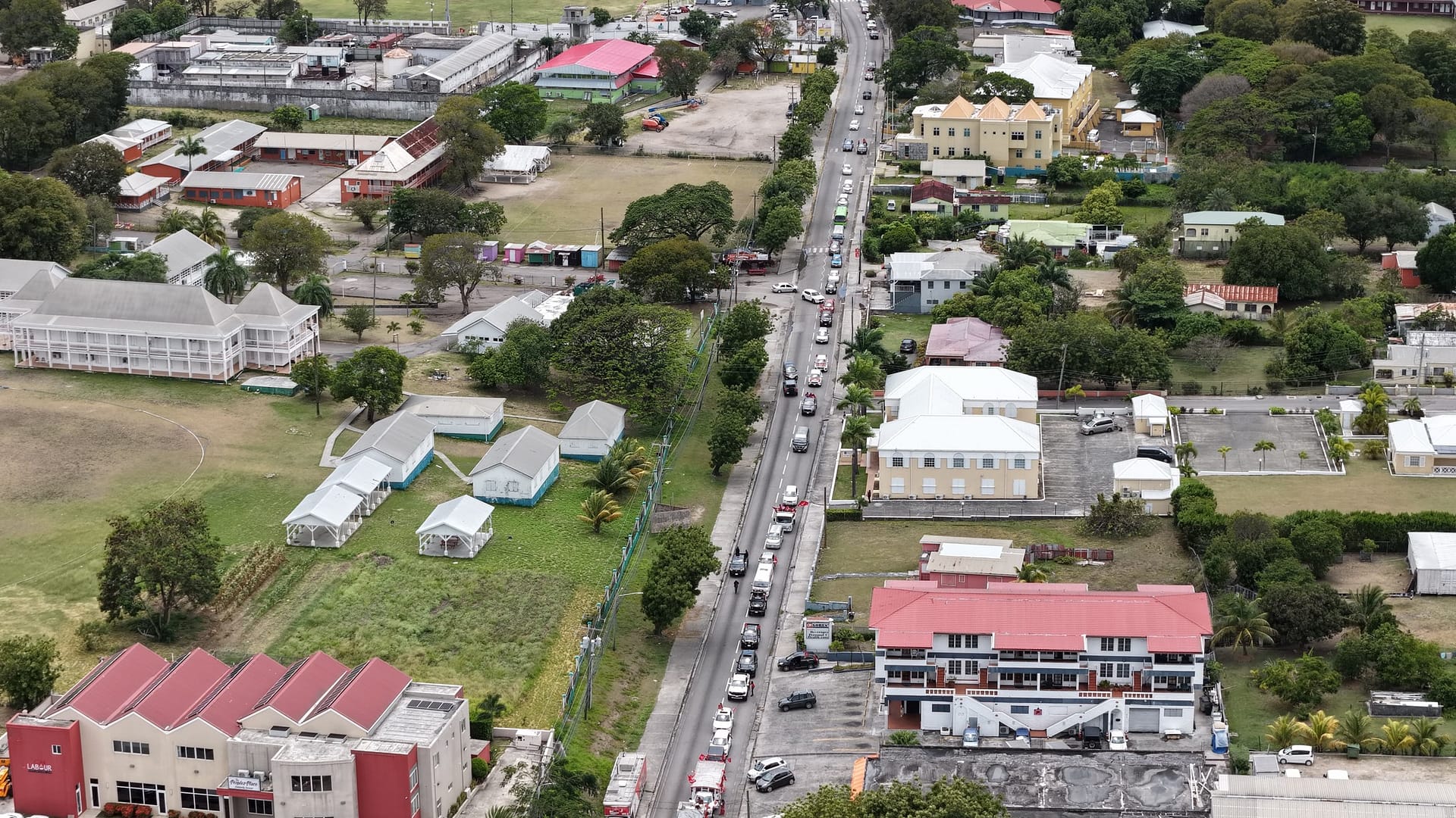The motorcade, which began at Rising Sun Grounds, quickly built into a high-energy display of political support, with long lines of cars, music trucks and flag-waving supporters moving through major routes including All Saints Road, Sir Sydney Walling Highway, Friars Hill Road and Market Street before ending at the Crawford Playfield.